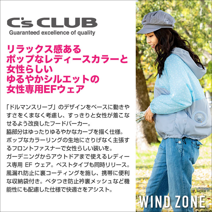 C's CLUB-シーズクラブ- WIND ZONE WZレディースラグランパーカー 商品の特長 優しい印象のパステルカラー空調服。